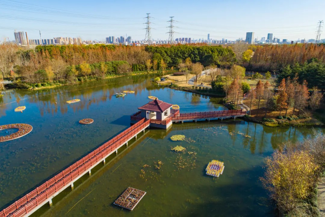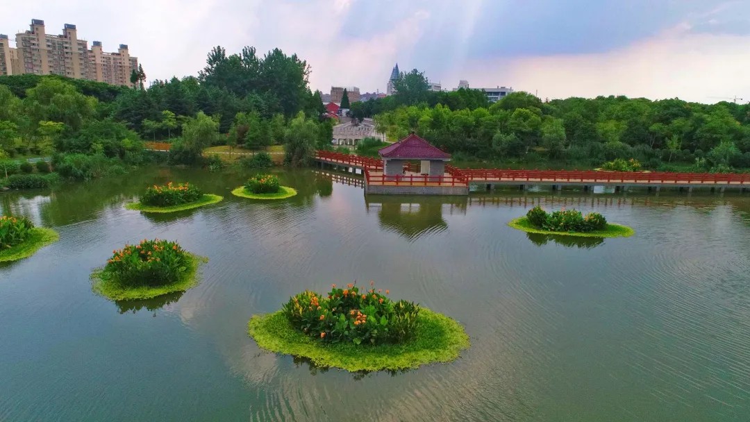 重视四季色彩规划,陆域选用黄金菊、紫娇花等色彩丰富的植物,河道两侧增种了碧桃、樱花等春季开花树种和具有高观赏价值的红枫、鸡爪槭等色叶树种,水域则选用美人蕉、黄菖蒲等水生植物形成动态水景画卷,使南北厅河“四季有景”。