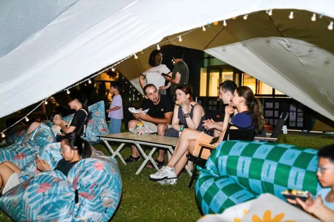 9月6日至7日,初秋轻风的周末,桃浦镇TOP中央公园的绿地上早已搭起一片片天幕,市民或结伴畅谈,或独自静坐,在自然中卸下平日压力。