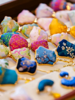 绒花,谐音“荣华”,寓有吉祥、祝福之意。绒花由天然蚕丝和铜丝作为原材料制作而成,多用于旧时民间的民俗节事与礼仪装饰之中。绒花题材寓意造型大多取自民间生活符号祥瑞,用以表达吉祥如意之意趣。