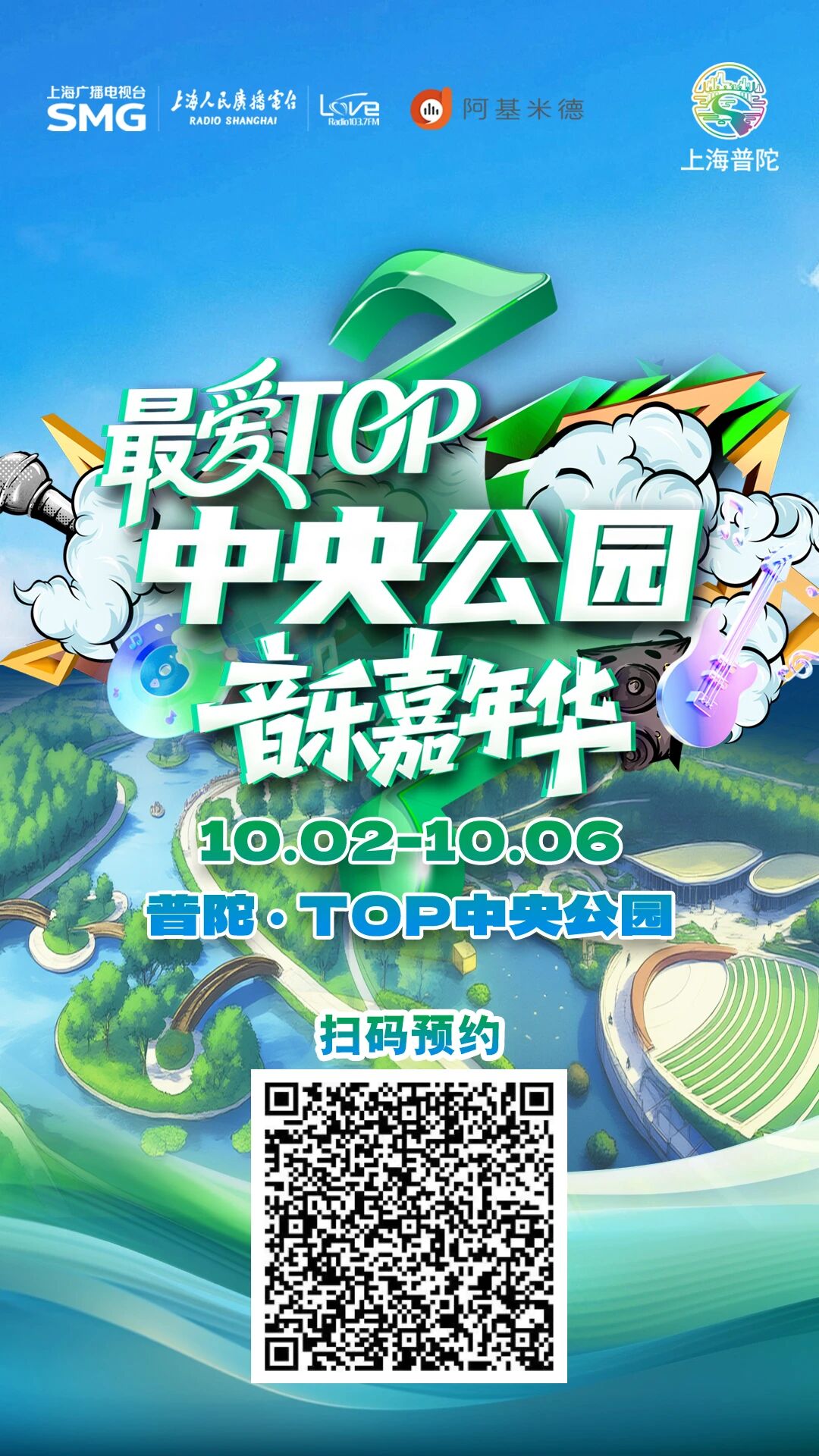 10月2日-6日,最爱TOP.中央公园音乐嘉年华即将开启!扫描二维码,立即预约!