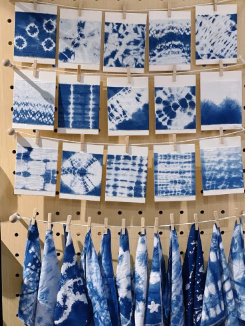 以天然蓝草为染,现场展示手工染制的布艺、相框画、团扇等作品,每一件都流淌着江海的风土气息,亲手体验扎染或夹缄技法,设计独一无二的纹样,感受植物染料的自然变幻。