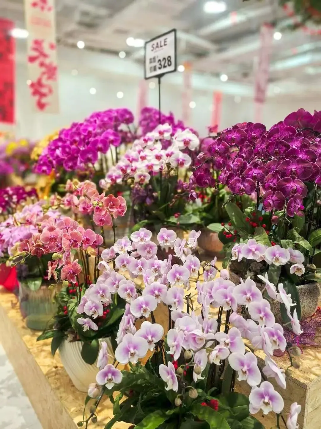 李辉透露:“周末日均人流量可达四千左右,日营业额约三四万元。”不少消费者专程从其他区域赶来,来自静安区的王雅静便是其中之一,“这里性价比非常高,我们是朋友推荐来的。本来已经买了两盆98元的,但还想看看188元的。”除蝴蝶兰之外,现场还有漳州水仙、郁金香、大花蕙兰、发财橘等年宵花热款,价格同样亲民实惠。
