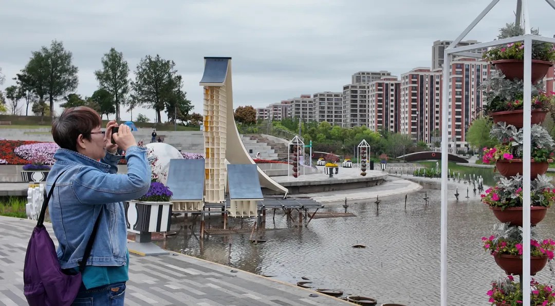 开幕首周末,普陀区的两个公园点位各有特色,TOP中央公园凭借开阔的场地和醒目的吉祥物造型,成为家庭出游的热门选择。半马苏河公园则依托临河而建的地理优势和富有传统文化韵味的花艺设计,赢得了喜欢游园漫步的市民青睐。
