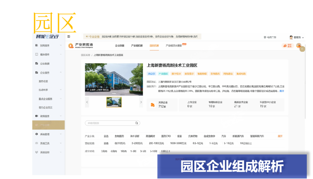 “E企行”平台配备了先进的智慧招商工具,借助人工智能和互联网大数据推动精准招商。它支持全量企业全维度信息查询,能根据细分产业查询匹配区内情况的招商目标企业,还能查询重点产业园区入驻企业组成,实现针对产业链和园区的精准招商。