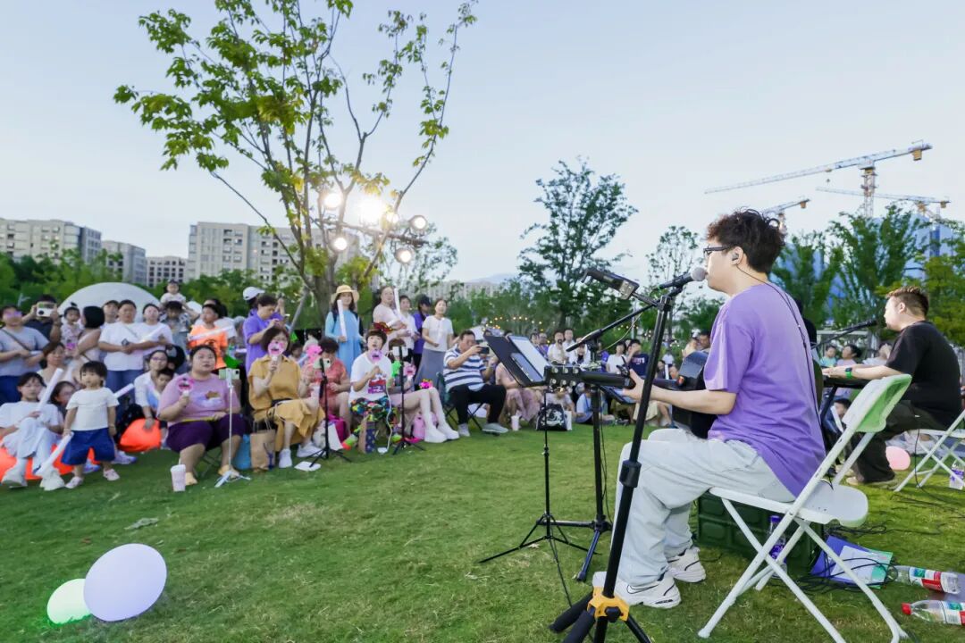 现场融合了音乐Live、集市、露营、交友、游戏与电影等元素,不仅丰富了居民生活,更以苏河源头的联结意义为纽带,串联起楼组文化,使邻里情谊随河畔微风传递,让社区凝聚力在这一标志性地点不断升温,把苏州河畔的夜晚点亮成一片欢乐的海洋。