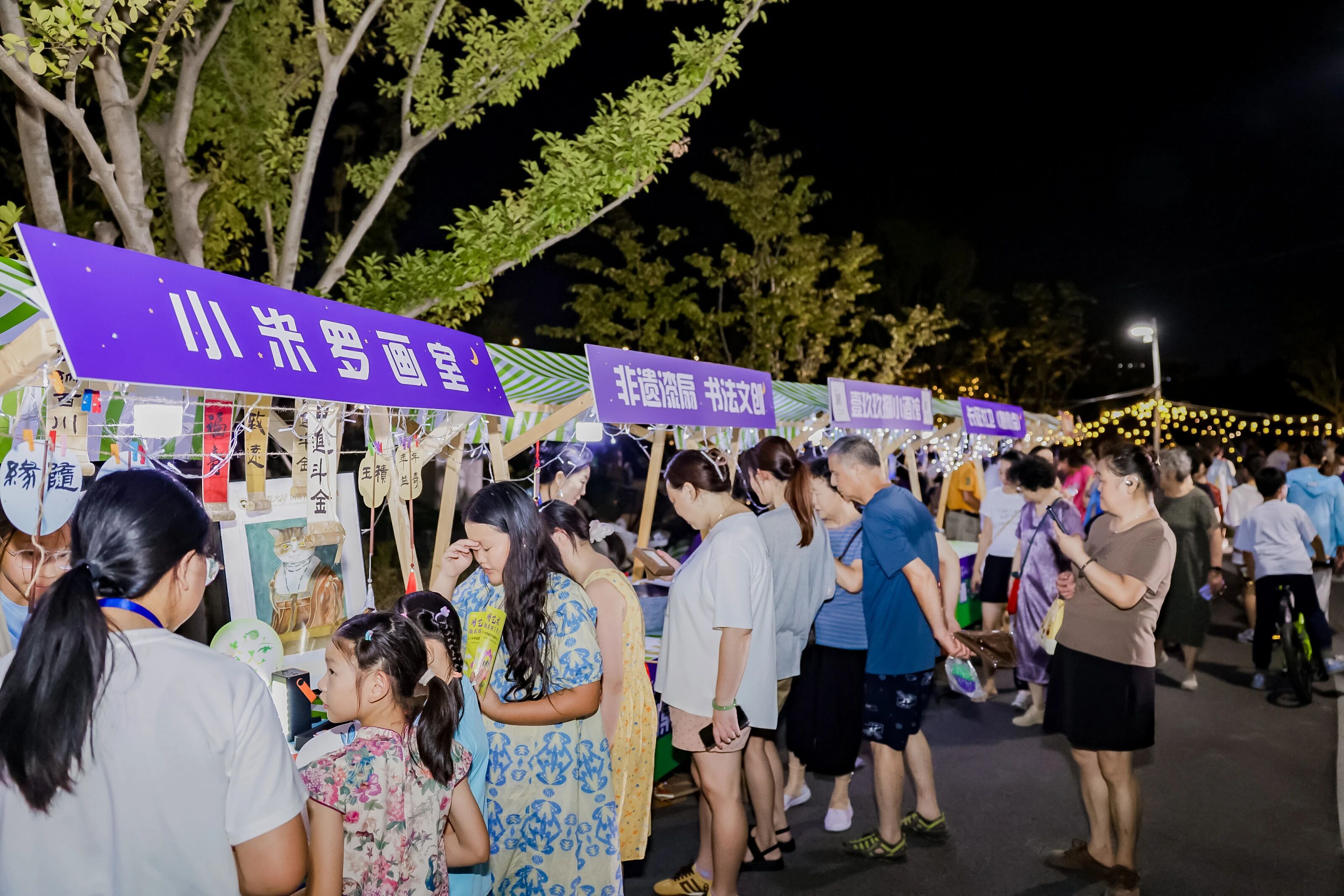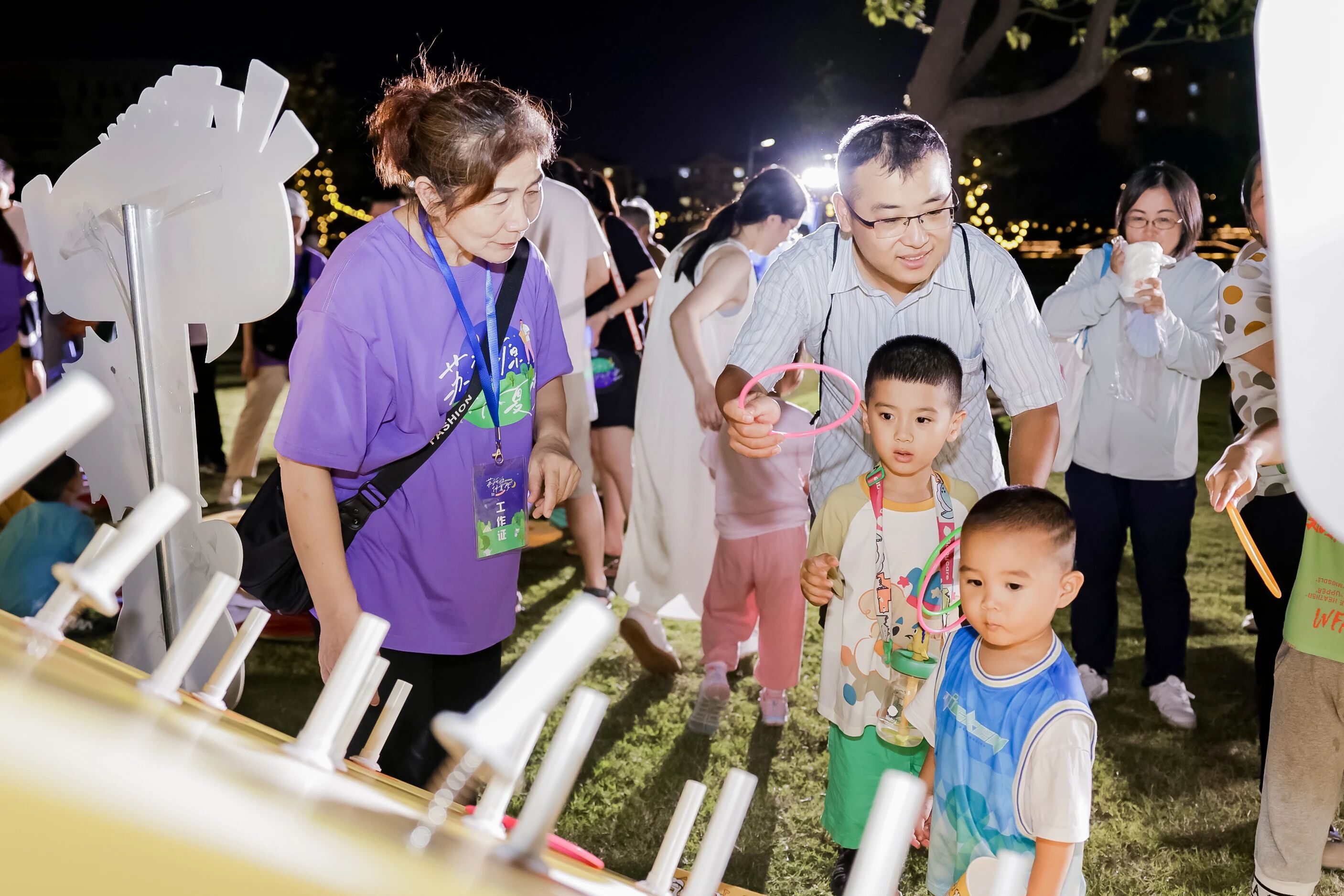 河畔的童趣游戏区化身为欢乐的互动空间,孩子们在星空下自由玩耍,回归自然。经典游戏不仅唤起了家长们的童年记忆,更搭建起亲子间的情感桥梁。简单的趣味互动中,家人间的默契与陪伴自然流露,成为夏夜最温暖的注脚。