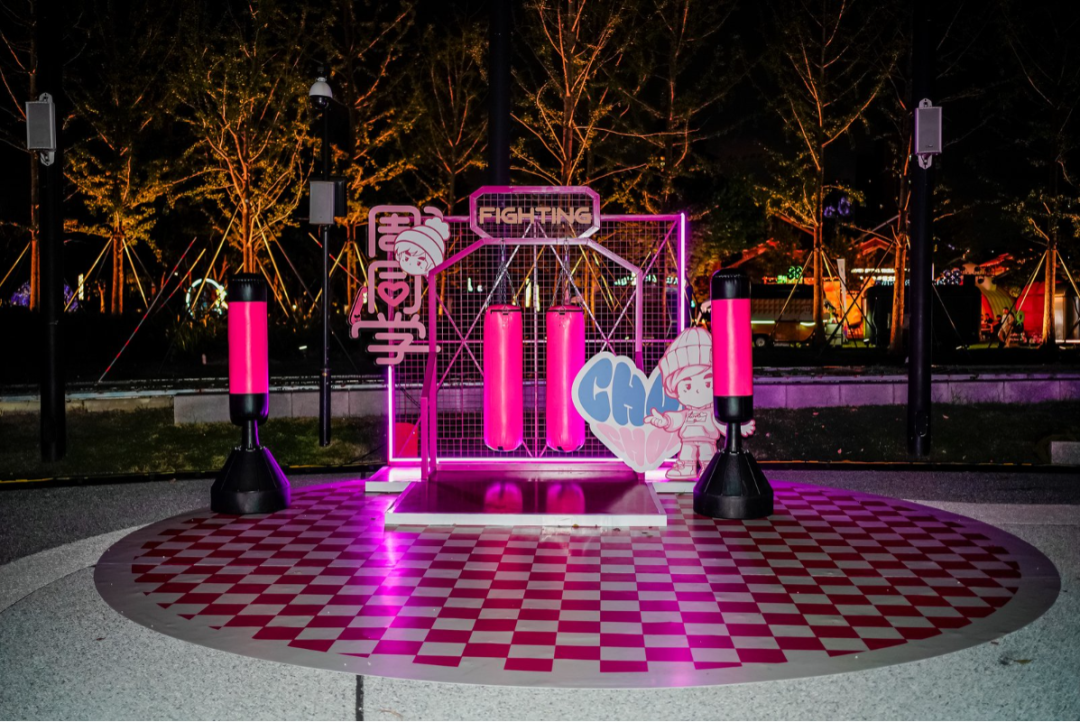 航程的结束,并非体验的终点。当意犹未尽的游客登岸,一座标志性的大烟囱下,巨大的“周同学”卡通雕塑正迎接着来自四面八方的访客。雕塑周边,一个精心打造的粉色主题梦幻运动场,为市民提供了休闲体验的又一空间。孩子们在篮球架旁、乒乓球桌前奔跑嬉戏,欢声笑语此起彼伏,运动场成了亲子互动的欢乐场。