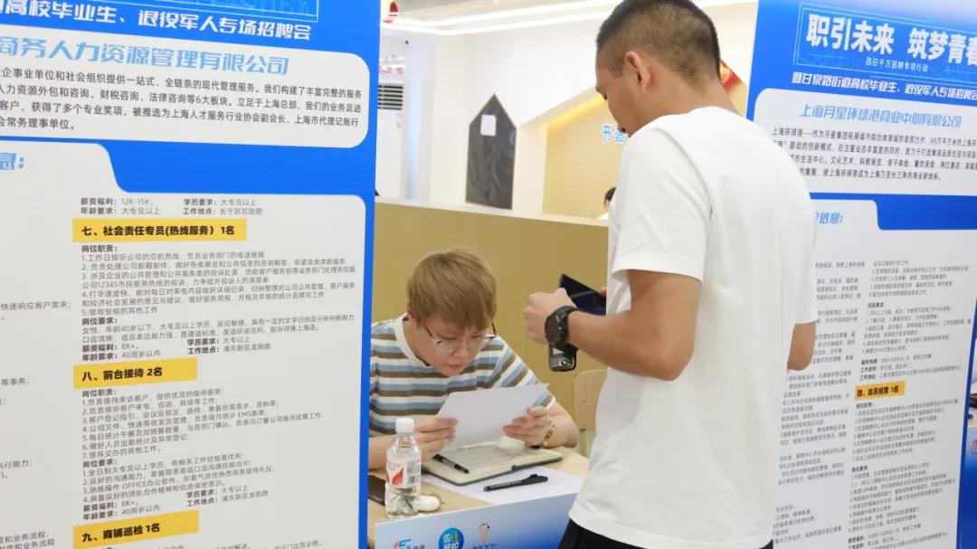 为积极推动“15分钟就业服务圈”建设,深挖企业资源,搭建精准对接平台,保障应届生、退役军人等重点群体就业,近日,阳光梦工坊就业服务站举办“职引未来 筑梦青春”普陀区甘泉路街道百日千万招聘专项系列活动,助力辖区求职者找到心仪工作,实现“家门口”高质量充分就业。 夏日炎炎,招聘会现场的气氛也是十分火热。本次招聘会覆盖岗位种类多样化,涵盖了IT技术、市场营销、财务管理、教育培训等多个行业领域,共有11家企业带来了近50个各色优质的岗位,吸引了众多高校毕业生、退役军人等求职者在招聘展位前驻足、咨询、投递简历。 在招聘会现场,求职者们手持精心准备的简历,规划着职业发展的蓝图,穿梭于各个企业展位之间,认真地了解企业的真实情况与岗位需求;企业通过与求职者的深入交流,发现更多潜在的优秀人才,为自身的发展注入新的活力。这种精准对接的方式,不仅提高了招聘会的效率与质量,更促进了人力资源的优化配置,实现企业与求职者之间“双向奔赴”。本场招聘会共吸引到180人左右参加,投递简历74份,有意向录用25人。 除了招聘活动外,招聘会现场特别设立了服务专区,更好地为高校毕业生、退役军人提供贴心服务,提供包含自我认知、简历修改、面试指导等在内的一对一职业指导服务,提供“贷你创业,助力行动”等创业指导服务,全方位提升求职者们的就业创业能力,为求职者就业保驾护航。