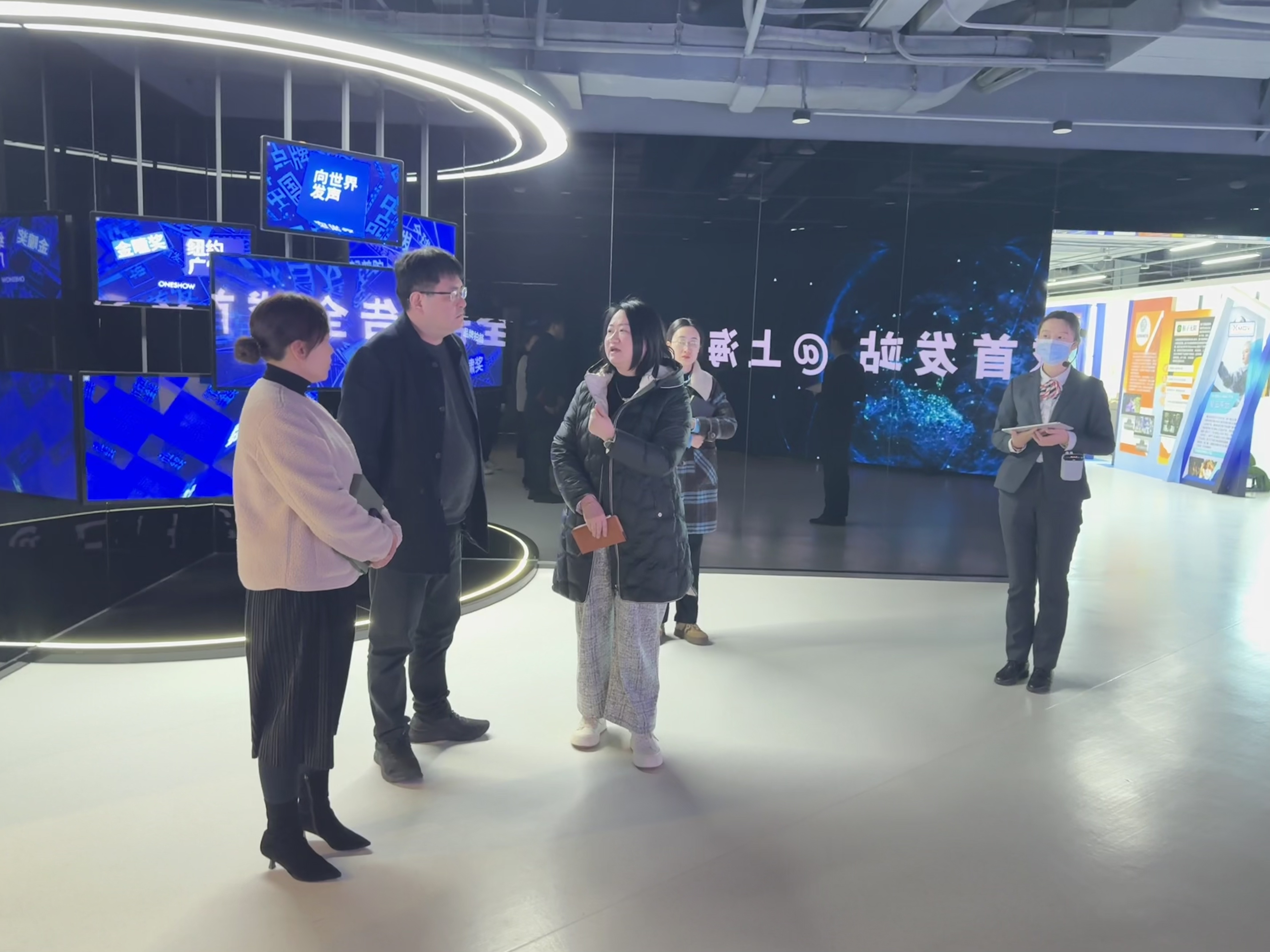 1月9日上午,松江市场监管局副局长贾黎、佘山镇副镇长孙陈啸一行莅临普陀数字广告园区考察调研,副局长韩莉陪同调研,真如副中心参加座谈。贾局、孙镇一行首先参观了数广园区的公共展示和共享服务空间,深入了解了园区建设运营情况以及普陀数字广告产业发展现状。随后,通过座谈会的方式各方就如何打造数字广告产业园区进行了热烈交流。会上,韩局从产业集聚、政策扶持、发展指导、行业规范等方面分享了我们支持和指导园区建设的经验及建议。