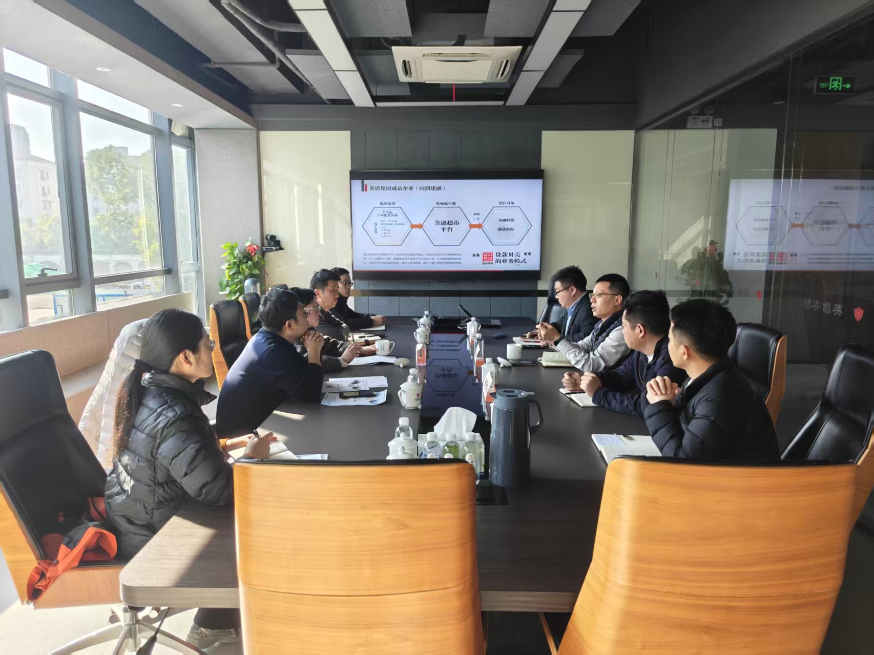 首先,英盾公司介绍企业经营情况,重点分析了公司在安保行业机器人应用和AI研发上的领先探索,以及公司在科技金融、大宗贸易方面的发展规划。其次,甘泉所为公司送上企业健康体检报告,讲解公司法律风险,并重点推荐了高质量发展方面的扶持政策。最后,俞书记着重提示英盾公司注重企业信用积累,鼓励公司不断提高企业科技含量、积极拓展新质业务,并要求甘泉所和英盾公司保持紧密联系,服务企业合规经营、健康成长。双方围绕企业和区域的发展变化进行了热烈交流。