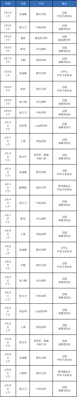 预告丨4月泉馨堂及海派中医传承门诊预告来啦