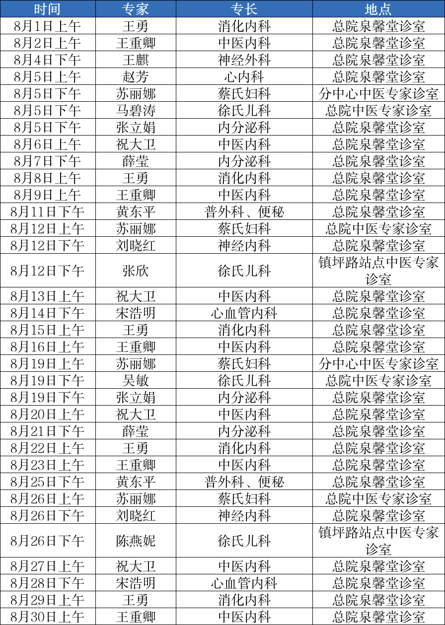 【预告】8月泉馨堂及海派中医传承门诊预告来啦