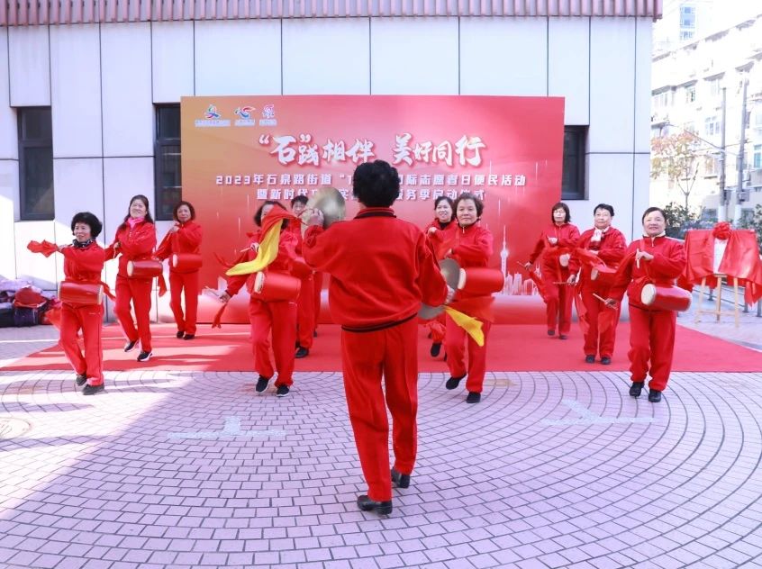 欢歌笑语,鼓声铿锵,活动在一片欢庆的腰鼓声中拉开了序幕。水兵舞热情奔放,扇子舞大气豪迈,石二居民区新时代文明实践站文艺志愿服务队的阿姨们用优美的舞姿庆祝志愿者们的节日,表达着积极向上的心态和对美好生活的憧憬。