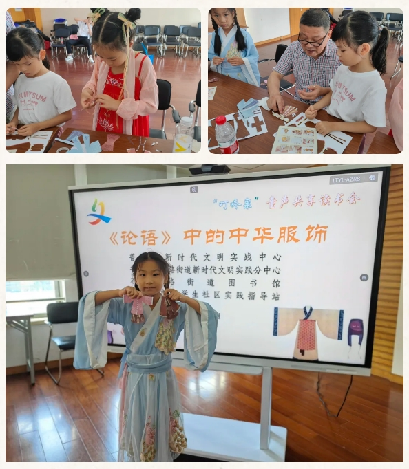 汉服,作为中华传统文化的璀璨瑰宝,蕴含着深厚的历史文化底蕴。为引领青少年深入探索中华优秀传统文化的博大精深,近日,石泉路街道新时代文明实践分中心、街道图书馆以及学生社区实践指导站携手开展了“叮咚泉”童声共享读书会,以“《论语》中的中华服饰”为主题,巧妙引导青少年从文化经典中领悟古代服饰与中华礼仪的深刻联系。