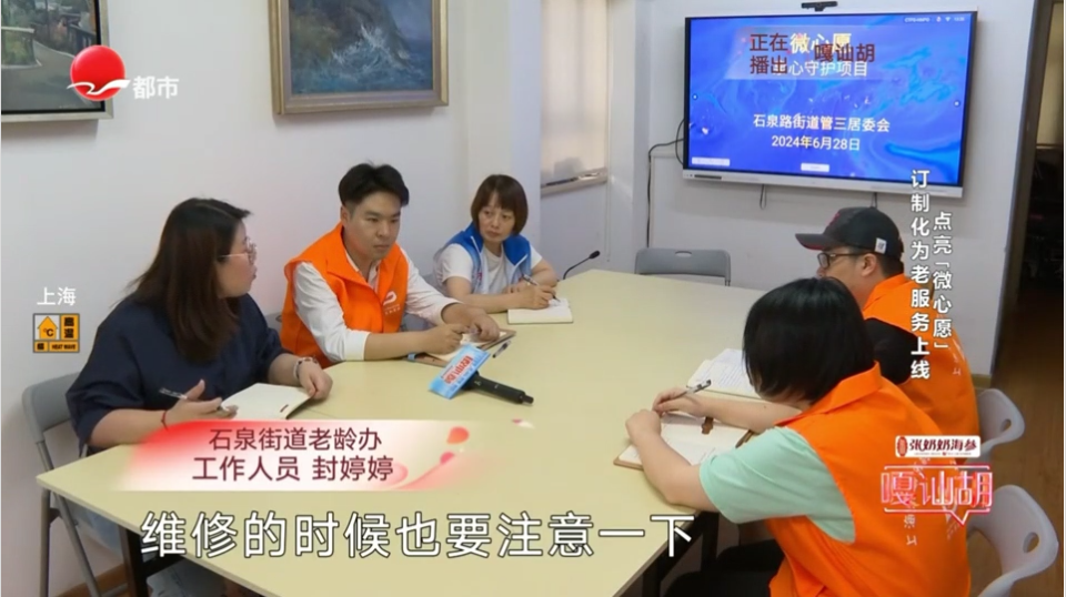 2024年08月05日 来源: 石泉路街道“什么叫微心愿,你们晓得伐?”近日,在上海人熟知的本地老牌民生节目“嘎讪胡”上,石泉路街道倾力多年打造的综合为老服务品牌“泉心守护”成为热议的新话题,主持人向观众们展示了工作人员电话慰问、上门清洗空调满足“微心愿”的工作场景,并全方位介绍了“泉心守护”的服务特色与内容,引发了在场观众的共鸣与讨论。