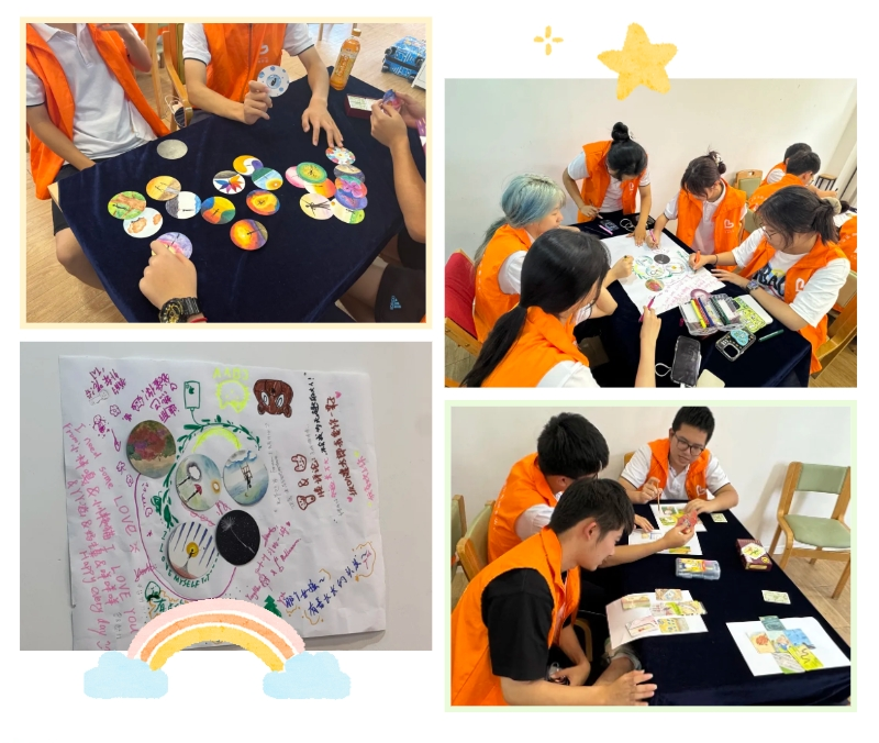 从选择最吸引自己的OH卡牌开始,每一张卡牌仿佛一扇窗,让青少年得以窥见内心的一隅。他们在白纸上摆放卡牌,分享与自我相似之处,不仅加深了自我认知,也促进了相互之间的理解和融合。“自制姜饼人”的环节更是创意满满,通过选择与排列,青少年勇敢地面对并表达了自己最真实的想法。