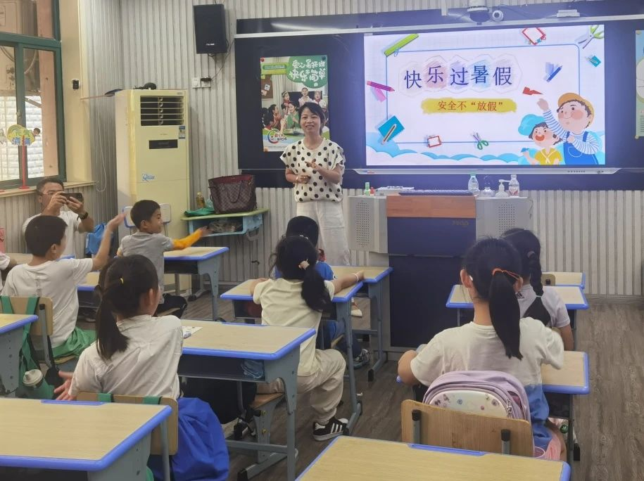 随着夏日的热情逐渐升温,为确保每位小朋友都能拥有一个既愉快又安全的假期,8月8日,由专业老师来到暑托班给孩子们上了一堂安全主题教育课程,从防止溺水、自然灾害、气象安全、交通安全、消防安全到居家安全、防骗防拐、上网安全、校园霸凌等主题,老师与同学们进行了互动交流,孩子们课后纷纷表示受益匪浅。