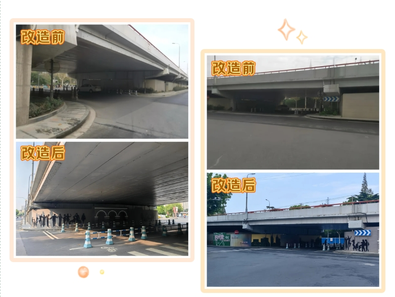短短不到一个月的时间,桥洞周边环境发生了翻天覆地的变化。这令人赏心悦目的景观,不仅白昼时分美观宜人,当夜幕降临,氛围灯亮起时,更是营造出一种别样的迷人风情。