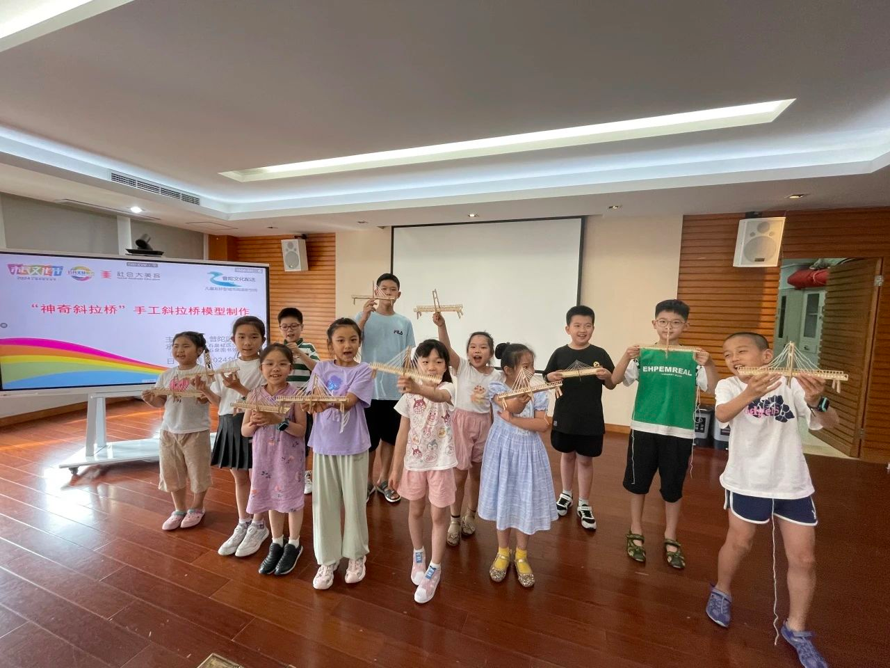 在“神奇斜拉桥”手工模型制作活动中,老师生动讲解了斜拉桥的设计原理与构造特点,引导学生们对斜拉桥有了更加全面而深刻的认识。老师还向大家推荐了精彩的书籍——《中国桥》,书中精选的20座著名桥梁,如同一幅幅精美的画卷,展现了中国桥梁的发展历程与独特魅力。