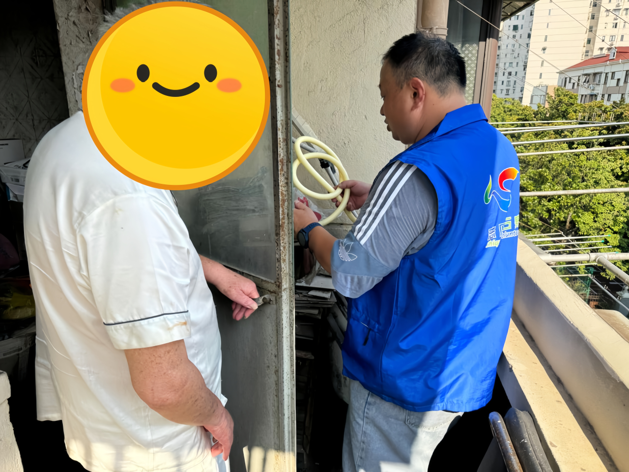 得知这一紧急情况后,社工周树斌立即上门查看,开门的是一位面容慈祥却略显无助的老先生。老先生眼含歉意,解释说自己年事已高,腿脚不便,对于空调冷凝水管的老化问题力不从心,因此给楼下邻居带来的不便,他感到十分内疚。
