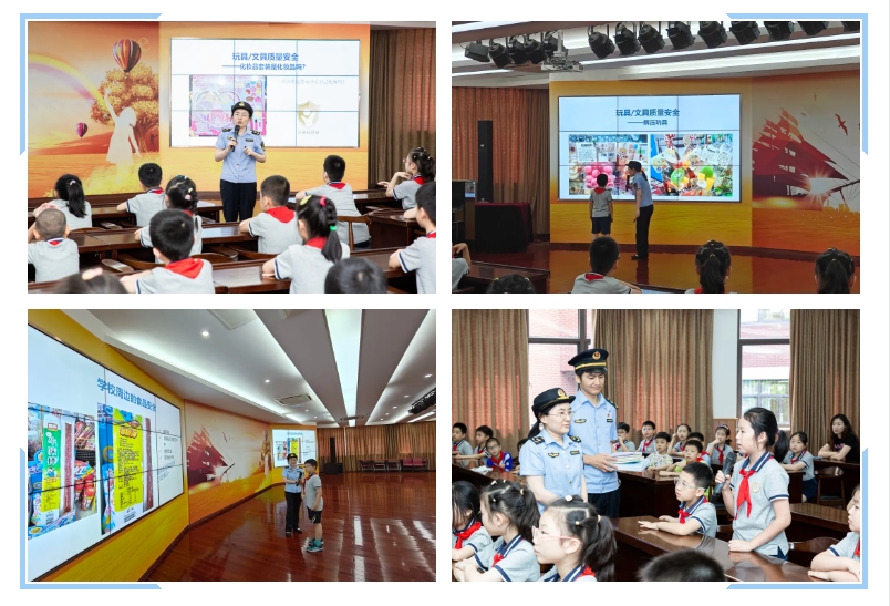 石泉市场监管所监管干部从回顾“开学第一课”中玩具、文具安全风险开始,继而对热门的“化妆品”玩具、“盲盒”玩具、解压玩具的风险点进行提示,同时教会孩子们选购玩具注意查看强制性认证标识和警示标识;监管干部还就校园周边预包装食品选购、食品添加剂常识进行讲解;针对近视防控,监管干部告诫孩子们去医院或者正规眼镜店验光配镜,同时引入“计量准确”的质量意识;最后,通过动画视频,向孩子们普及了安全乘坐电梯的注意事项。