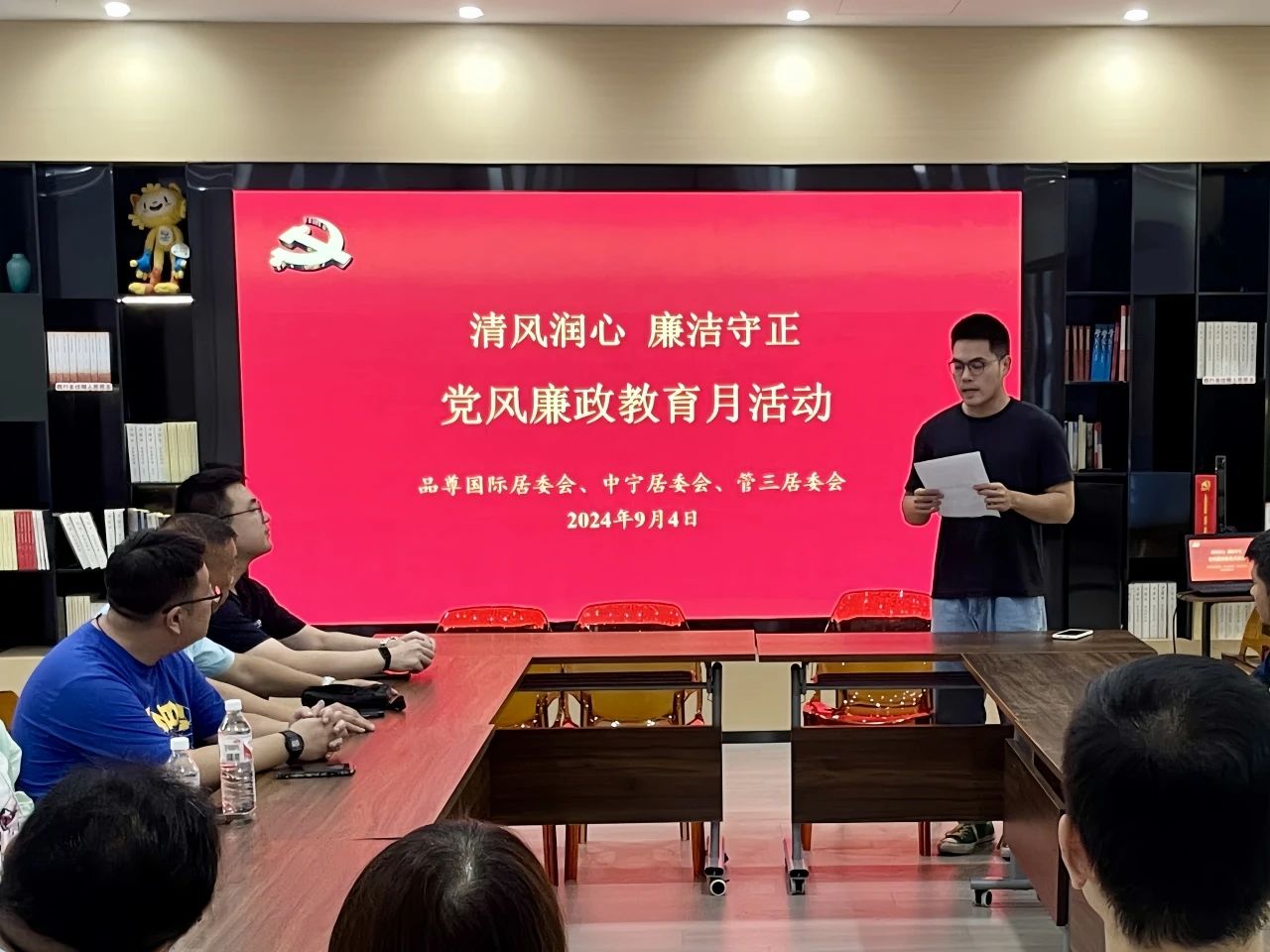 2024年09月20日 来源: 石泉路街道为深入学习贯彻习近平新时代中国特色社会主义思想和党的二十届三中全会精神,根据街道2024年党风廉政教育月活动安排,近日,品尊国际居委会、中宁居委会与管三居委会携手开展“清风润心,廉洁守正”2024年党风廉政教育月活动。