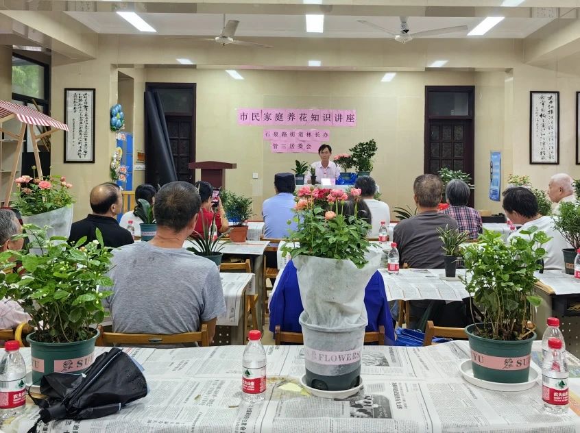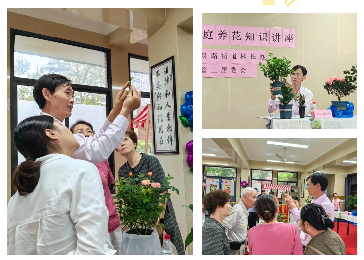 2024年09月27日 来源: 石泉路街道为普及日常园艺常识,提升家庭养花技巧,美化居住环境,9月25日下午,石泉路街道林长办联合管三居委会,在街道市民园艺中心举办市民家庭养花知识讲座。活动通过专业园艺师的讲解,让居民们了解花卉养护的奥秘。来自石一、石二、宝华城市之星、管二、洵二的居民踊跃参加此次活动。