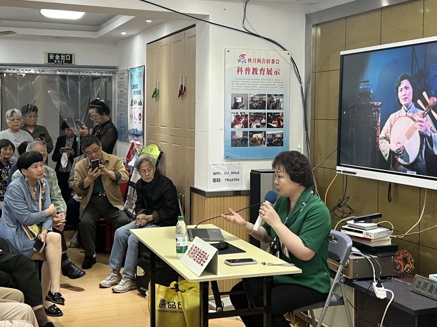 著名沪剧表演艺术家马莉莉也来到现场,她深情回顾了自己在《红灯记》《芦荡火种》等一系列角色历程,生动讲述个人艺术生涯的点点滴滴,赢得了居民们的广泛喜爱。随后的访谈互动环节,更是让社区居民近距离领略到艺术的魅力与艺术家的风采。