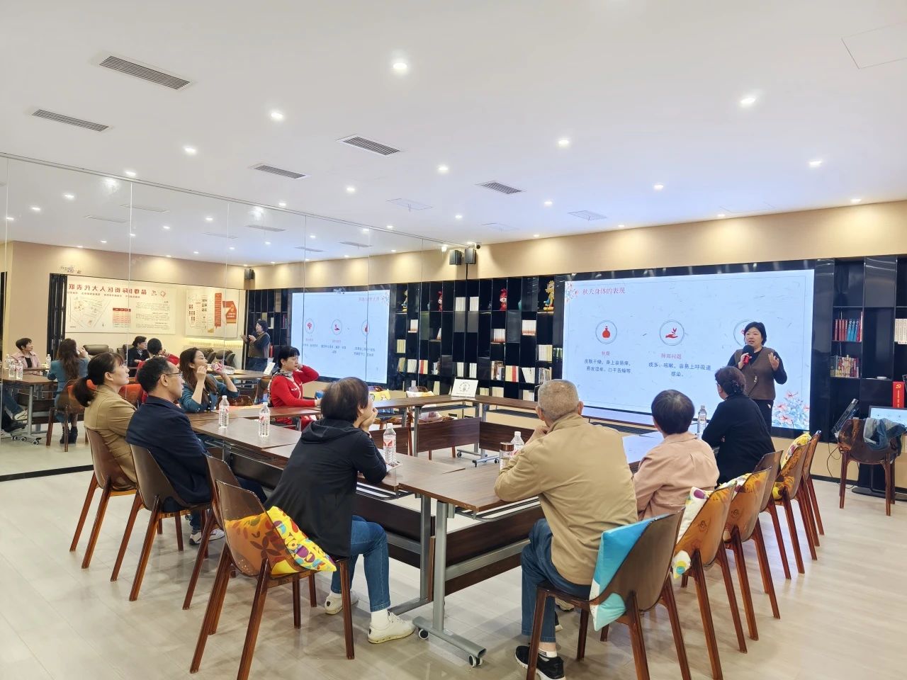 挂牌仪式后,“银辉先锋”品尊居民区学习活动小组开展了健康养生讲座及养生锤的制作。在专业老师的带领指导下,老党员们互相帮助,一个个充满艾草香味的养身锤就制作好了。