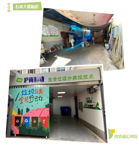 2024年11月26日 来源: 石泉路街道垃圾分类是城市文明的重要体现,垃圾厢房也逐渐成为“文明一角”。为进一步提供整洁、规范的生活垃圾分类投放环境,加强生活垃圾分类管理。今年,石泉路街道在区局的指导下,根据《2024年上海市生活垃圾分类精品居住区(村)建设、可回收物回收体系改造提升工作安排》的要求,及时对部分设施老化、面积狭小的垃圾厢房进行提升改造。目前,厢房改造工作硬件建设方面已经通过了市局的验收,让我们一起来看看改造后的变化吧。