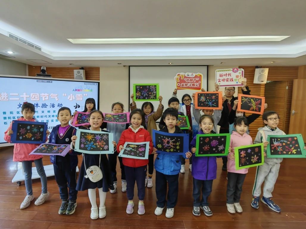 2024年12月02日 来源: 石泉路街道在我国博大精深的传统文化中,“二十四节气”宛如一幅幅细腻的画卷,不仅精准地指导着农事活动,更蕴含着古人对自然之美的深刻感悟与智慧结晶。随着冬季的第二个节气“小雪”悄然而至,普陀区新时代文明实践中心、石泉路街道新时代文明实践分中心联合学生社区实践指导站,精心开展了一场走进“小雪”节气的文化体验活动,通过创作盐画雪花这一独特形式,引领青少年深入领略中国传统文化的无穷魅力。