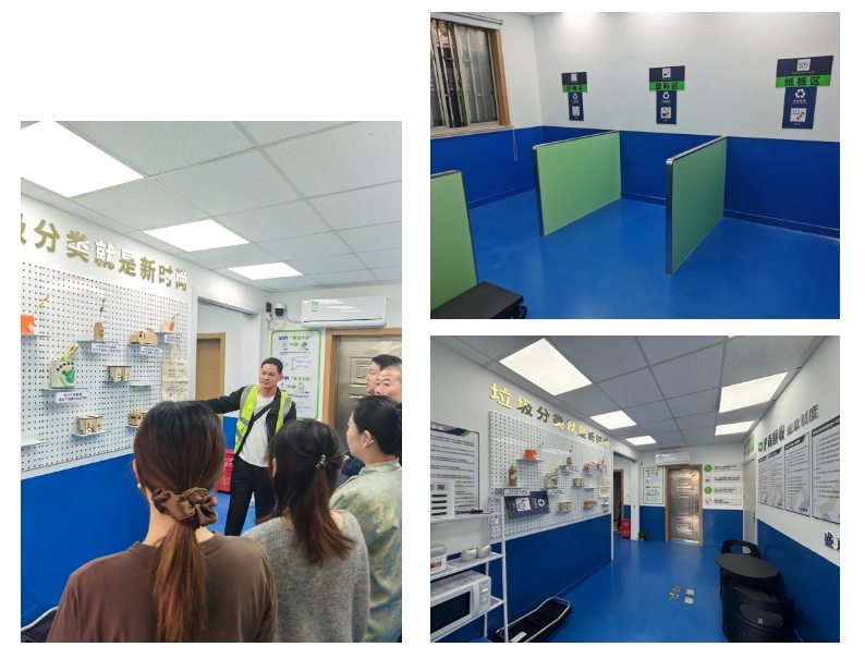 该回收服务点于今年8月份建成,坚持垃圾分类”1+2+X”服务模式,即一点二站三位一体理念,融合了环保惠民点—消防站—科普站等多元化呈现,带给广大居民更好的惠民回收服务体验。通过实物展品、图文资料及声光电等形式,展示科普知识,墙面有科普宣传资料,并配备了一台100英寸的多功能显示屏。市民可体验再生资源利用的操作流程、进行有奖知识问答,以及观看垃圾分类的宣传视频。