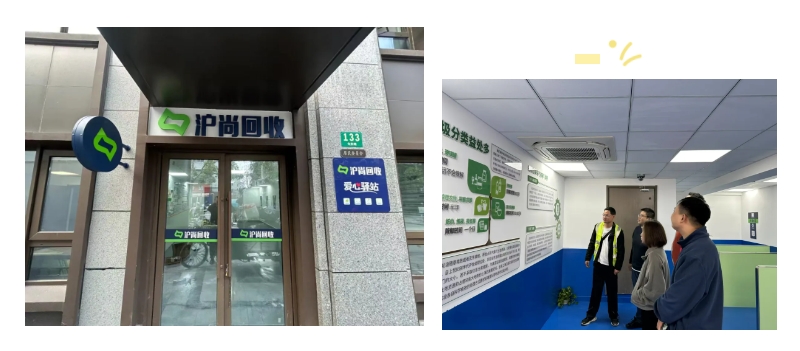 来到该惠民回收服务点,可以看到门口设置了一个智能回收箱,按照可回收物五大类玻、纸塑、金、衣,24小时方便市民交投回收。服务点墙上“沪尚回收”爱心驿站的牌子,表示它具备爱心驿站的功能,为环卫工人、快递小哥等户外劳动者提供一系列温馨服务,包括饮水纳凉、驱寒避雨、手机充电、紧急用药等,户外劳动者可以在这里感受到来自社区的温暖关怀。