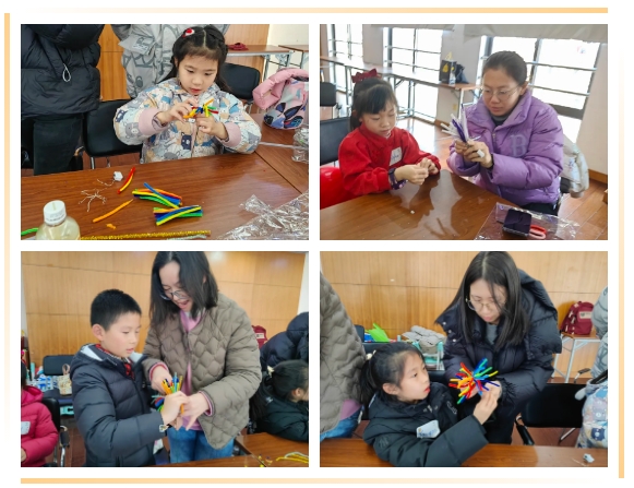 为了营造更加浓厚的新年氛围,志愿者们还用五颜六色的扭扭棒、胶水、剪刀等手工工具,现场示范如何制作节日“烟火”。通过修剪形状、缠绕、装上一闪一闪的灯串,“烟花”变得更加绚丽多彩。