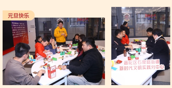 2025年01月07日 来源: 石泉路街道为进一步增强青年文化人才的归属感和幸福感,在元旦来临之前,普陀区新时代文明实践中心联合石泉路街道新时代文明实践分中心在中岚居新时代文明实践基地开展了“我在新时代文明实践中心迎新春”活动,吸引了近百名住户参与。