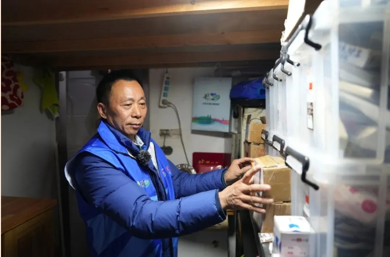 在石岚二村37号楼内,一个约5平方米的房间便是冯飞自己设计的设备间。虽然整体空间不大,但是被他收拾得井井有条,一个个透明盒子内,辅料配件、工具用品一应俱全。冯飞表示,长年累月的修理经验让他十分熟悉老年居民家中常见的维修难题,自己整理的设备间让他总能及时找到相应配件。在他设备间的角落里,各类“先进个人”“普陀好人”的荣誉奖被擦拭得干干净净。
