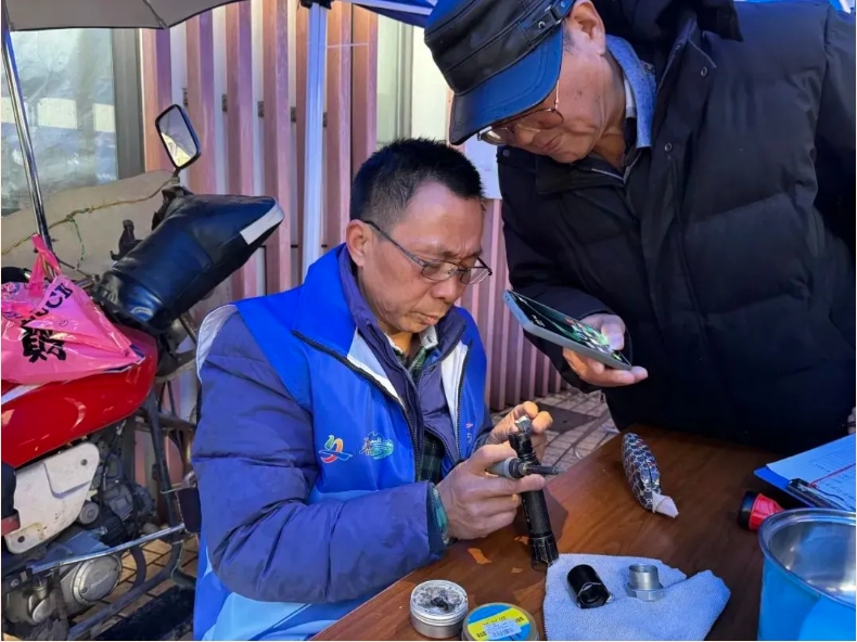 市民陈爷爷抱着试一试的想法,特地冒雨前来,期待这位“冯师傅”能帮忙修好一件使用了十多年的手电筒。老年人习惯了旧物品舍不得丢,这个手电筒是他每天起夜、找东西必备的物品。“真没想到冯师傅能把这么老的产品修好,我太谢谢他了。”陈爷爷看着重新亮灯的手电筒,略带激动地说道。