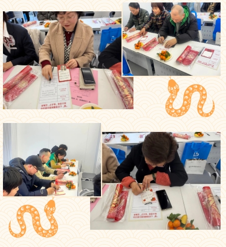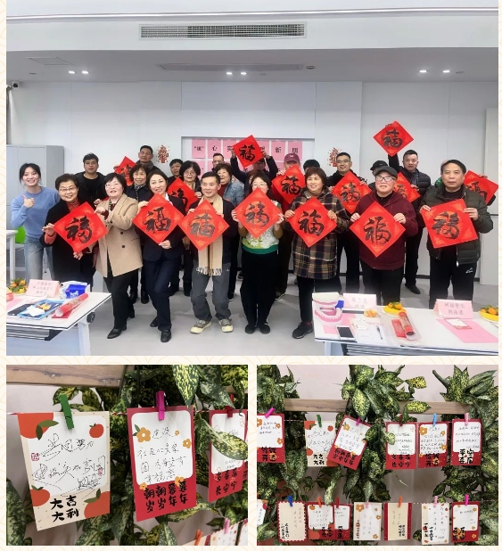 现场,大家一起在新春贺卡上写下了美好祝福,在一句句问候的话语里,在一来一往的交流中,大家彼此熟络了起来,心也被拉得更近。社区志愿者还为大家现场写“福”、送“福”,每一个“福”字都承载着满满的祝愿,让现场的年味愈发浓厚。