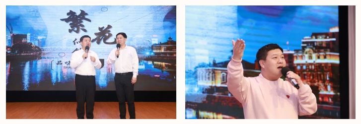 很多新兴领域党员,特别是流动党员,多是来沪打拼和奋斗的人。当党课进入 “衣食住行” 篇章,通过热门电视剧《繁花》的经典荧幕和沪语台词再现,报告厅化作时光长廊,曾经和平饭店和“四大金刚”的舌尖美食,与现在的美团饿了吗指尖畅选呼应;将70年代的 “永久牌” 自行车铃声穿越屏幕,与陆家嘴的霓虹灯影交响;石库门老宅的煤卫合用记忆,叠映着智慧社区的人脸识别系统。这不是简单的今昔对比,而是用曲艺的独特魅力,让新兴领域党员们在笑声中触摸城市跳动的脉搏。