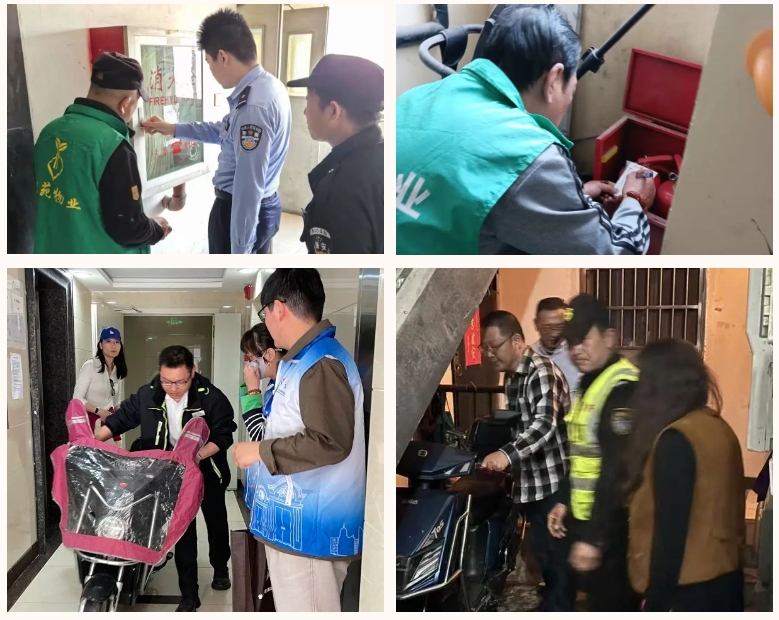 各居民区、物业公司、社区民警及社区志愿者组成联合检查组,采取“网格化+地毯式”的方式开展消防安全自查行动。重点对楼道堆物、电动车违规充电、消防设施完好性等关键环节展开细致排查。