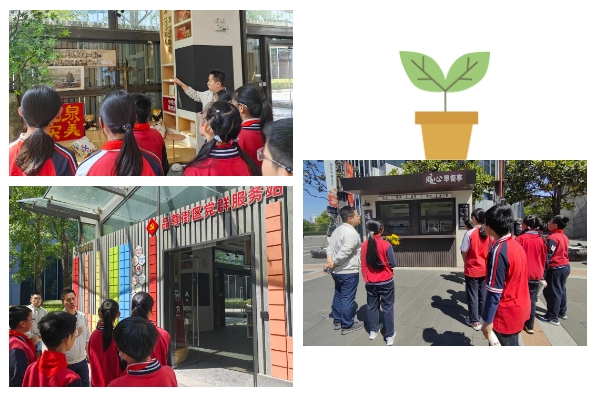 随后,在街区党群服务站,书记讲述了品尊居民如何参与设计,并与周边企业共建党群服务驿站的故事。他指着驿站中一幅题为“石泉实美”的童趣作品,告诉同学们,这正是北海中学一位学生的创作。书记边走边讲,咖啡文化街、早餐亭......那些平凡却动人的故事,让大家对社区的建设与发展有了更深刻的理解。