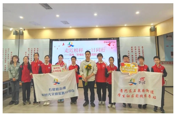 近日,石泉路街道新时代文明实践分中心联合学生社区实践指导站、品尊国际新时代文明实践站、上海市北海中学,让北海中学“海贝视界”小记者团走进品尊国际居民区,开展“走进榜样 一日同行”——石泉“劳模说”文明实践活动,为青少年提供了一次近距离接触榜样、聆听故事、深入交流的宝贵机会。