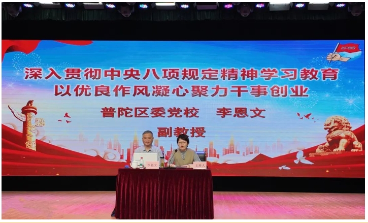 讲座以准确理解和把握中央八项规定精神为主线,带领与会人员深刻理解学习教育的重要意义,领会中央八项规定及其实施细则精神的核心要义、实践要求,并结合普陀区域发展实际,激发党员干部对新时代党的作风建设产生系统性思考,引导大家以优良作风推动普陀高质量发展。