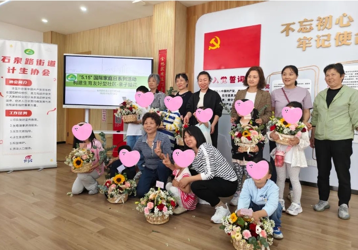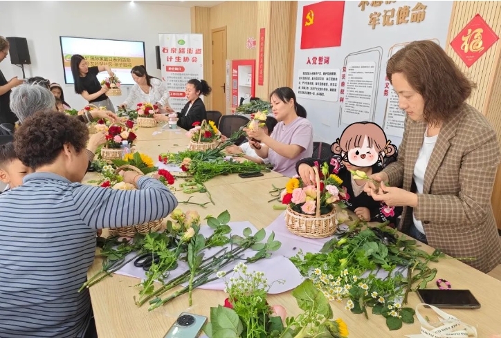 2025年05月15日 来源: 石泉路街道为积极推动建设生育友好型社区,提升亲子关系和家庭凝聚力,在国际家庭日来临之际,石泉路街道计生协为辖区内的亲子家庭举办了一场“花香抚心痕——爱暖母亲节”主题插花活动。