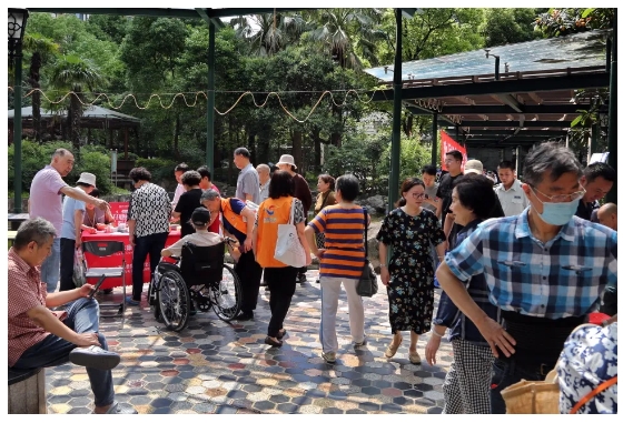 在便民服务区免费理发摊位前,志愿者们一边仔细地为长者修剪头发,一边与他们亲切地唠着家常;磨刀摊位上,师傅专注地打磨着刀具,不一会儿钝旧的菜刀就焕然一新。