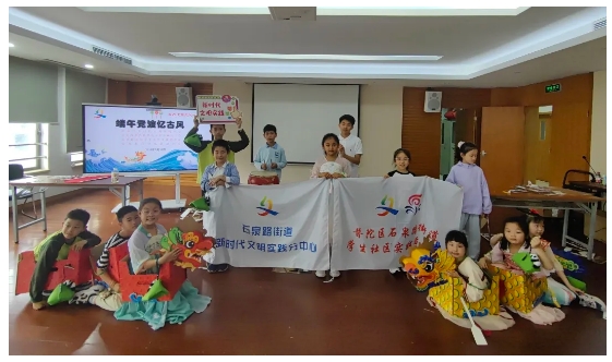 石泉路街道新时代文明实践分中心举办了“端午竞渡忆古风”——“我们节日·端午”活动旱龙舟活动,吸引了众多石泉亲子家庭的积极参与。孩子们在亲身接触和体验端午习俗的同时,进一步增强了对民族文化的认同感和归属感。