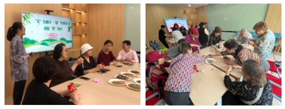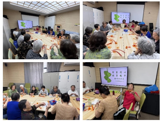 此外,秋月枫舍居民区党总支还携手共建单位农商银行普陀养老专营团队,开展“艾草端午‘粽’情手作”养生锤手作活动。