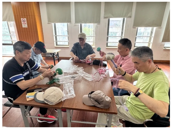在大家的共同努力下,一个个饱满精美、散发着浓郁艾草香气的艾草锤逐渐成型。看着自己亲手制作完成的作品,居民们的脸上都洋溢着自豪和满足的笑容,成就感满满。“让我在动手过程中学习到了新技能,用制作好的艾草锤给自己按摩,促进血液循环、缓解肌肉酸痛,感觉自己更健康了。”参与活动的华叔叔开心地说道。