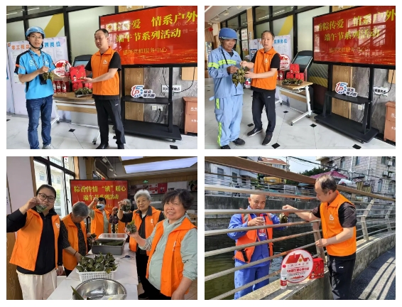 街道总工会与新就业群体代表一同踏上“送粽之旅”。他们将这份饱含深情的节日礼物亲手送到环卫工人、快递员、外卖小哥等户外劳动者的手中,每一份粽子都承载着对户外劳动者辛勤付出的感激与尊重,让他们在忙碌的工作之余,也能感受到来自社会的关怀与温暖。