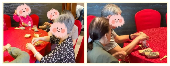 在休憩时,工作人员为服务对象精心安排了一场别开生面的手工活动。活动现场,大家可以根据兴趣自由选择:有的用五彩斑斓的布料、线绳等材料缝制端午香囊,有的则专注制作精美的铃兰花灯。这些富有传统文化特色的手工项目,既展现了参与者的巧手匠心,又传承了中华传统技艺。大家围坐在一起,互相交流制作心得,在欢声笑语中完成了一件件精美的手工艺品。每个人脸上洋溢的幸福笑容,不仅是对劳动成果的满足,更是对美好生活的真挚期许。